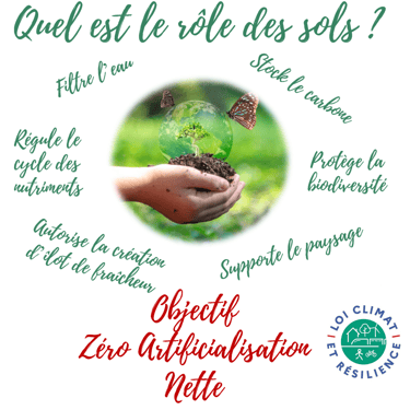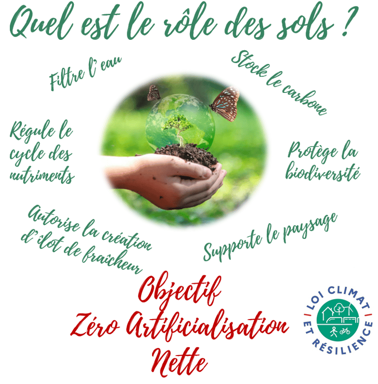 La lutte contre l'artificialisation des sols représente aujourd’hui un enjeu majeur pour limiter le réchauffement climatique. Un sol artificialisé n'absorbe plus de dioxyde de carbone, perd sa biodiversité, retient les polluants, réduit la capacité des terres agricoles, augmente les risques d'inondations.